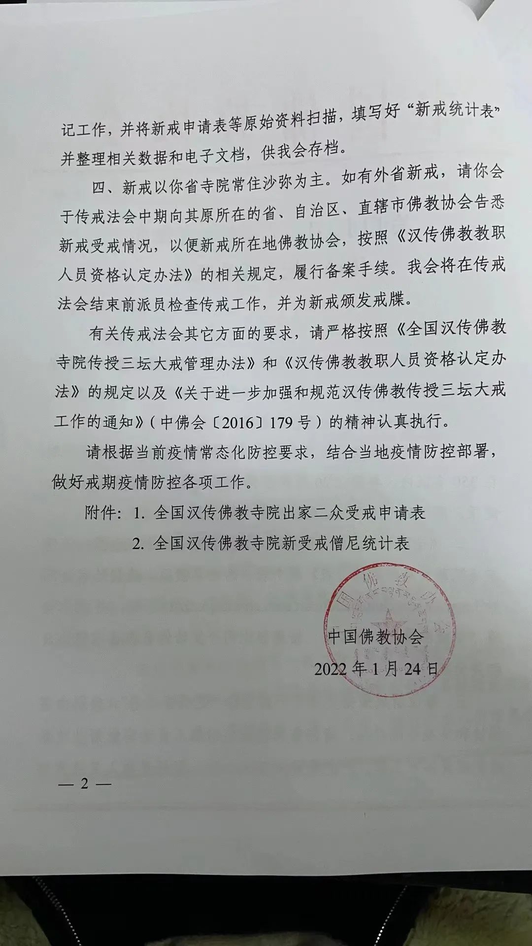 壬寅年嵩山少林寺传授三坛大戒法会补充通知(二)
